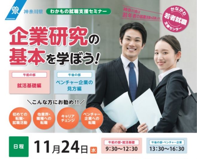 受講無料 わかもの就職支援セミナー 企業研究の基本を学ぼう 就活基礎編 21年11月24日 神奈川県 こくちーずプロ